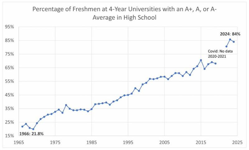 With grades becoming increasingly inflated (see graph below), colleges are looking increasingly for genuine proof of capability.
